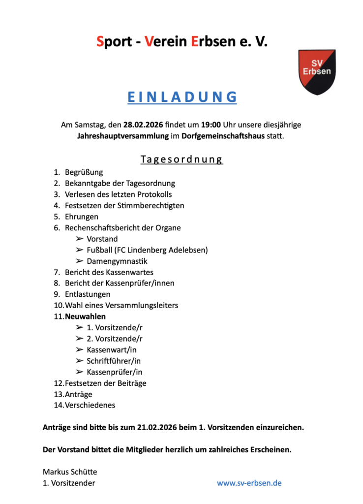 Jahreshauptversammlung SVE